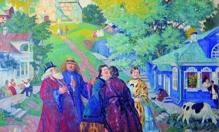 Через пять минут они уже на центральной площади города Т. Высоко на православной горке собрался весь цвет города. Красивые изящные лица, высокие умные лбы, негр с русским лицом, женственные бабушки в шляпках, большие семейства в трех поколениях (семьи Ивановых, Крышкиных, Лембергов, Лопасовых и многих других), нарядная одежда, предчувствие общей радости, глаза, наполненные присутствием собственной души, – все это делает людей вокруг прекрасными существами.…» Е. Леонтьева, М. Илизарова Глава «Пасха», «Про психов», (2014) • Кустодиев Б. М. «Встреча (Пасхальный день)» 1917 г. • #цитаты • #пропсихов