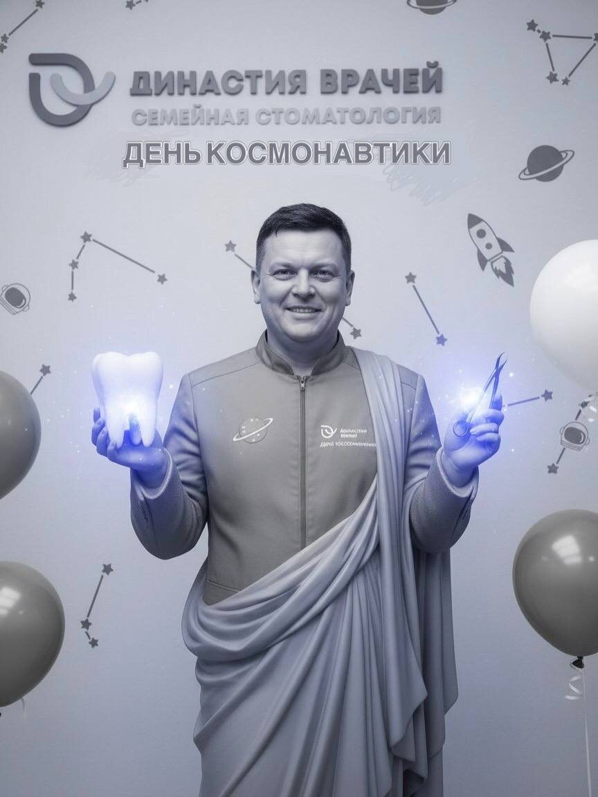! ✨ Друзья, 12 апреля — это не просто история про полёт Гагарина. Это символ бесконечного движения вперёд. Технологии не стоят на месте — это одинаково верно и для бескрайнего космоса, и для такой земной, но очень точной сферы, как стоматология. То, что ещё вчера казалось фантастикой, сегодня — обычная практика. Мы знаем, что настоящие профессионалы, как и космонавты, не боятся ставить рекорды мастерства. ⭐️ Нашим врачам мы желаем не бояться «космических» высот, постоянно развивать свои супер-навыки и покорять любые, даже самые орбитальные, клинические задачи. Пусть ваши руки будут увереннее гравитации! 😁 А нашим пациентам желаем сиять ярче самых далёких галактик! Пусть ваша улыбка ослепляет окружающих своей красотой и здоровьем, а визиты в «Династию врачей» будут лёгкими, как полёт в невесомости. С праздником! К звёздам и здоровым зубам — смело! 🌟🪐