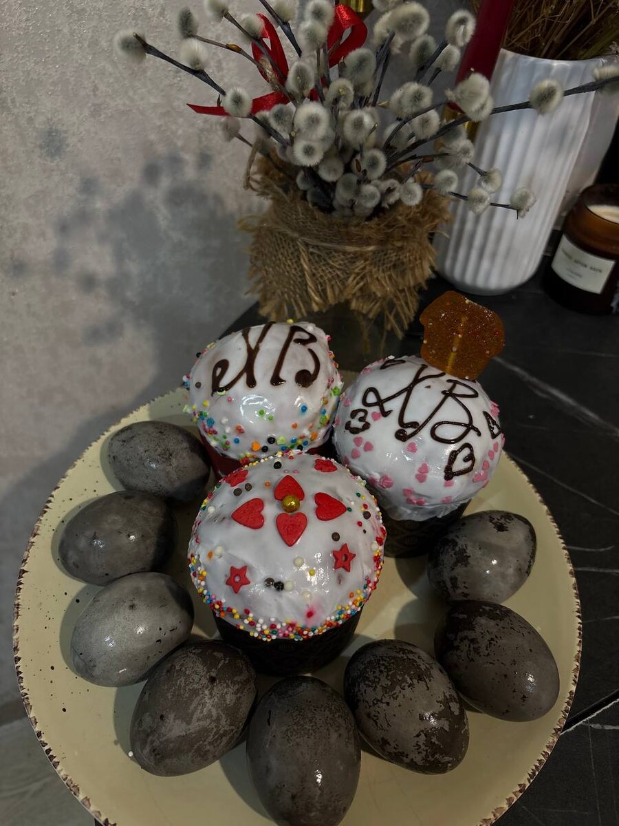 В этом году совсем не было времени на то, чтобы испечь кулич самой, даже яйца красила в последний момент тем, что было под рукой 😂