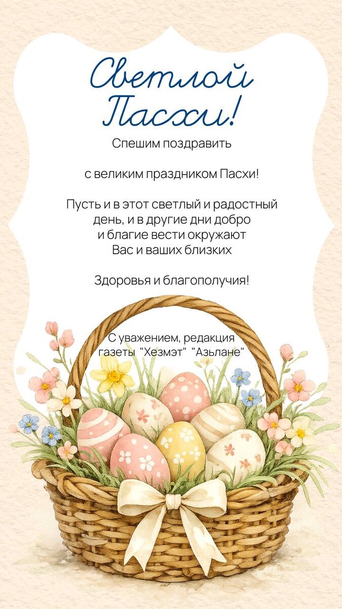 ! Бу көн тормыш шатлыгын һәм яңарышны символлаштыра, игелеккә һәм гаделлеккә ышанычны ныгыта, халкыбызның тарихи тамырларын һәм тирән традицияләрен үзенчә аңларга ярдәм итә. Христосның яңадан терелүен дин тотучылар рухи яңарыш, әхлакый кыйммәтләргә тугрылык символы буларак кабул итә. Пасха бәйрәме һәр кешенең игелек һәм иҗат эшләре өчен тууын искә төшерә. Бүген, бу катлаулы вакытта, шәфкать һәм сабырлык, мәрхәмәтлелек һәм гафу итү, патриотизм һәм якыннарга карата мәхәббәт күрсәтергә кирәк. Бу көн һәр йортка шатлык һәм өмет, яхшы кәеф, иминлек һәм иртәгәсе көнгә ышаныч китерсен. Сезнең гаиләләрдә һәрвакыт тынычлык, игелек, татулык, мәхәббәт һәм ышаныч хөкем сөрсен! Рамил Нотфуллин, Балтач муниципаль районы башлыгы