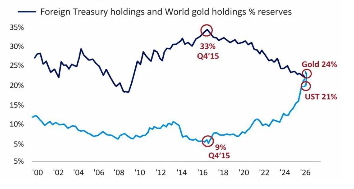 Центральные банки переключились на золото: почему XAU обошел казначейские облигации США по доле в резервах впервые с 1990-х