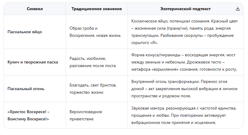Примечание: Эзотерическое прочтение не заменяет каноническое богословие, а дополняет его языком символов и внутренних состояний. В православии Пасха – это прежде всего дар благодати и историческая реальность Воскресения; эзотерический взгляд помогает увидеть, как этот дар отражается в архитектуре человеческой души и космических ритмах.