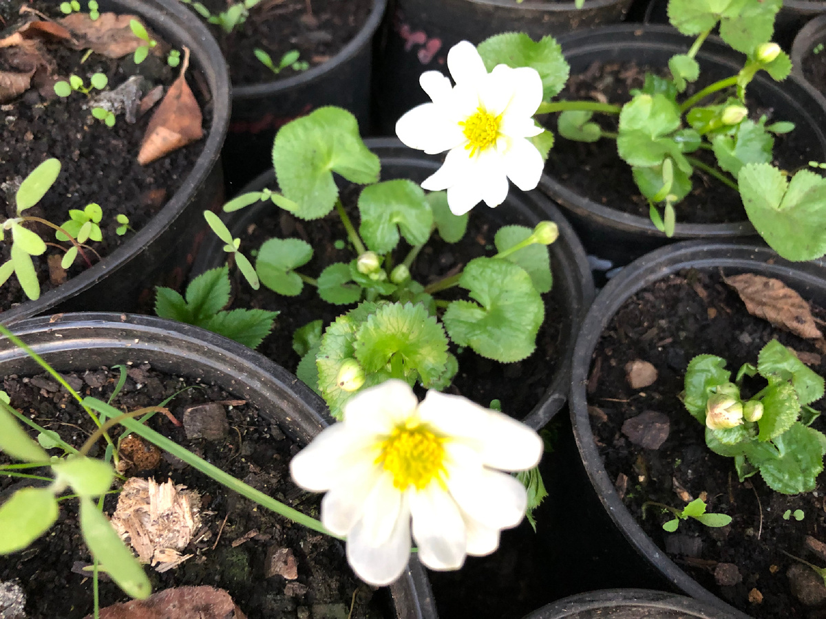 В теплице цветёт калужница белая, зимовавшая в теплице.