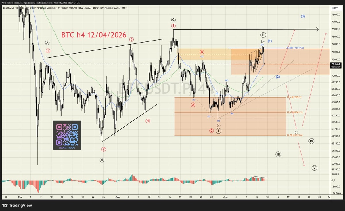 Пора уже эту плоскость выносить куда-то . 2 месяца уже достаточно, чтобы накопитиь позиции всем участникам Большие пулы ликвидности стоят на 76.000 и 64.000 Вероятны оба сценария. Если цена пойдет ниже 70.000 и закрепится, то с большой вероятностью пойдем на 64.000. Если удержим 71.500 - 70.000 и отобьемся, то 76.000 на прицеле будет. https://www.tradingview.com/x/NSwO2jRi/