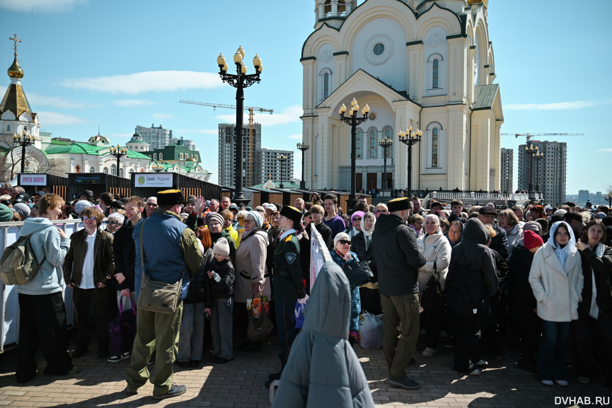 Пространство перед главным собором Хабаровска превратилось сегодня в многолюдный праздничный городок в связи с проведением Пасхального фестиваля. В его программе — события для всех возрастов и интересов. Как объяснили организаторы, они вдохновились идеей, что Пасха — праздник, который объединяет людей независимо от возраста и степени воцерковленности. - Даже те, кто редко бывает в храме, чувствуют в эти дни особую атмосферу радости, обновления и света. Именно поэтому решили сделать акцент на общегородском формате: каждый житель и гость Хабаровска сможет прикоснуться к праздничной традиции, увидеть красоту православной культуры и просто провести день в кругу семьи на одной из центральных площадок города, - сообщили организаторы. Задумка удалась — народу пришло очень много. - Я пришел с родителями просто посмотреть и мы были очень впечатлены количеством собравшихся, никак не ожидали, что народа соберется так много, - рассказал хабаровчанин Алексей. Начали мероприятие с благотворительной