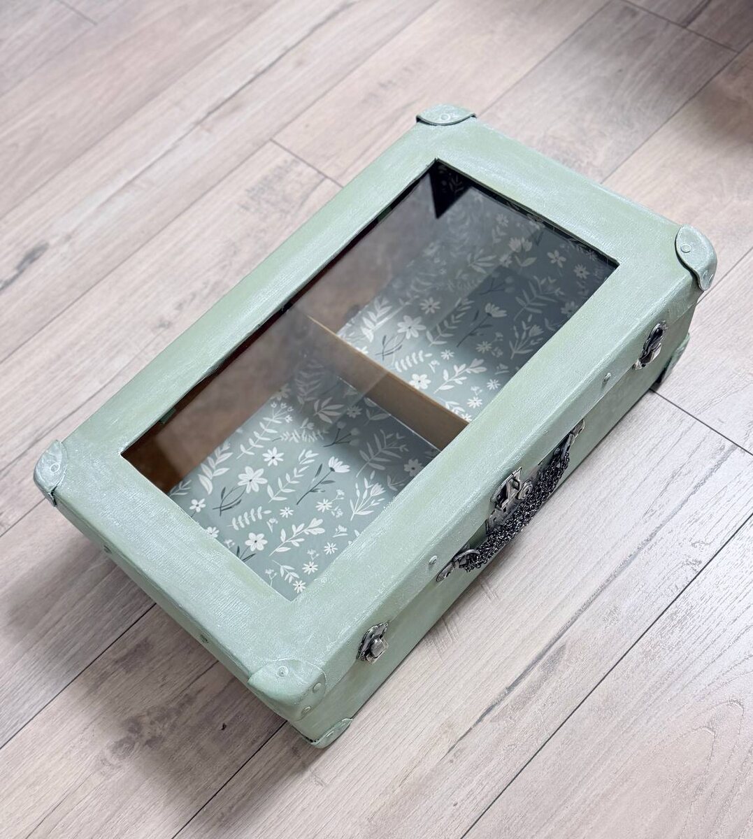 🧳 На даче на втором этаже стоял старый советский фибровый чемодан. Углы его были укреплены металлическими накладками. Защелка исправно работала, издавая характерный звук при ударе о стенку чемодана. В детстве мне не раз попадало защелкой по пальцам, когда я пыталась открыть крышку. Внутри чемодан был оклеен бумагой и было видно, что пользовались им аккуратно. Бабушка в нём хранила старые вещи, с которыми было жаль расставаться. В детстве особенно красивыми и недоступными мне казались бабушкины блузки из крепдешина. Их прохладная и шершавая ткань немного поблескивала и скользила в руках. Вместе с ночными сорочками и занавесками блузки доживали свой век в старом чемодане. Запах лет и сырости с годами вытеснил запах дороги и путешествий. Выбрасывать эту семейную реликвию мне было жалко. И однажды золотые руки моей подруги превратили его в полку. Теперь чемодан снова поедет на дачу уже в совершенно новом качестве. Подруге Вере посвящается 💫
