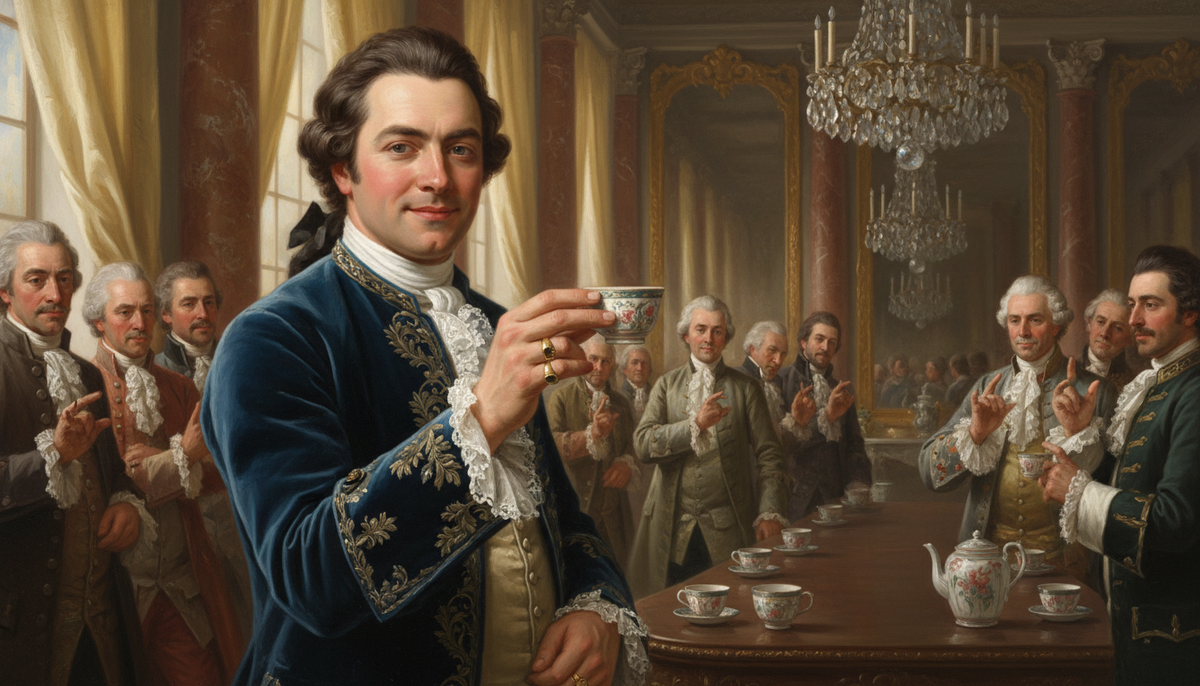 Это был не жест. Это был пароль. В XVIII веке, когда европейское общество делилось не на богатых и бедных, а на тех, кто знает правила, и тех, кто только догадывается о них, один маленький изгиб мизинца мог сказать о человеке больше, чем весь его гардероб. Сегодня мы смотрим на оттопыренный мизинец с насмешкой — как на карикатуру из старого водевиля. Но за этим жестом стоит история, в которой переплелись фарфор, война, золотые кольца и очень неудобные чашки. Начнём с фарфора. В XVII веке он был буквально на вес золота. Китай столетиями хранил технологию его производства в строжайшей тайне, и первые фарфоровые чашки, попавшие в Европу, стоили баснословных денег. Их покупали короли и герцоги — и пили из них с осторожностью ювелира, держащего бриллиант. Чашки были крошечными, тонкостенными, почти невесомыми. Взять такую в кулак было невозможно — она просто ускользала. Держать приходилось кончиками пальцев, а мизинец при этом естественным образом отходил в сторону. Никто не думал о красоте