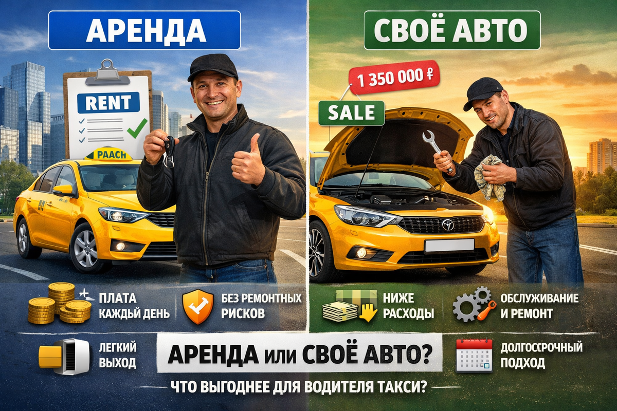 Универсального ответа для всех нет. Если нужен быстрый старт, минимум риска и нет желания вкладывать крупную сумму, аренда — разумный вариант. Она особенно хороша для новичков и тех, кто хочет проверить, подходит ли ему работа в такси.