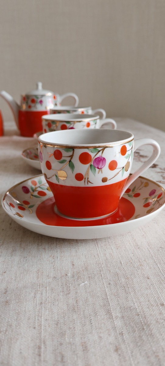 Добрый день! Всех христиан поздравляю со светлым праздником Пасхи! Сегодня я хочу показать вам еще одно мое приобретение. И это снова фарфор из Песочного. Для тех, кто впервые попал на мой канал коротко расскажу: меня зовут Ирина, я родилась в Костроме, на Волге. Было это давным-давно. С молодости живу в Москве и в Подмосковье. А совсем недавно начала собирать фарфор. Преимущественно это фарфор Первомайского завода в Песочном. Хотя, как у многих коллекционеров и собирателей фарфора, в мою коллекцию попадает фарфор и других советских заводов. И этот фарфор я тоже нежно люблю. О том, как я решила для себя вопрос, какой фарфор все таки коллекционировать, я кратко написала в статье " Чаепитие на Волге" ( можно почитать здесь https://dzen.ru/a/abP1OKzruEJfmU2H ). В начале апреля на АВИТО я увидела и купила сервиз Брусника. Во всяком случае это название нашла в интернете. В музее в Рыбинске представителей этого сервиза нет. Есть только аналогичный в синем цвете Голубика. Поэтому живем пок