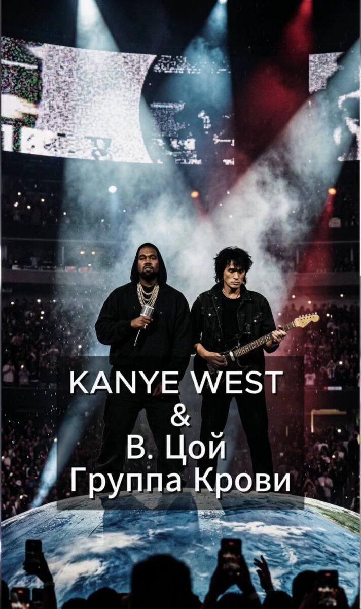 ) 🎙️🇷🇺 Ролик тут Решила протестить версию, где Канье поет на английском, но в середине врывается голос самого Виктора Цоя. Мои наблюдения: • Стоило перевести текст на английский, как музыкальная ДНК «Кино» обнажилась полностью и стало похоже на Depeche Mode! Слышите сходство? • Голос Канье в низком регистре идеально ложится на этот холодный стадионный звук. Для меня это история про то, как музыка стирает границы и эпохи. Как вам такой фит? Оставляем гибрид или идем в полный английский? Или пробуем других артистов? В инсте мнения разделились, а как вам? Автор: Яна Матвеева НейроПоток Связь со мной @mya_ai_creative