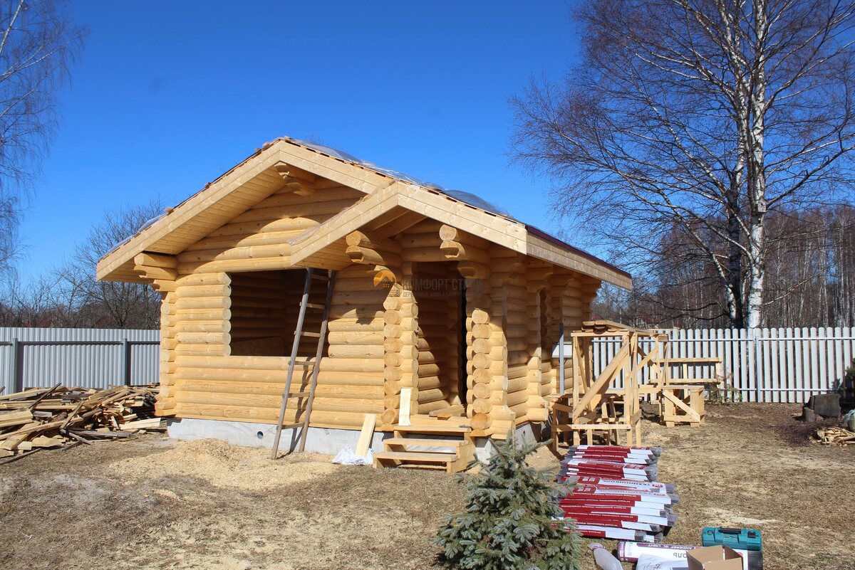 " Размер: 5,5 х 5,5 м Площадь: 33,4 м2 Место строительства: Ярославская область, Рыбинский район, д. Назарово Фундамент: ленточный Оцилиндрованное бревно 220 мм. Подшивка свесов кровли имитация бруса Кровля: Гибкая черепица Технониколь SHINGLAS Интересна подробная стоимость такой бани, ставьте "+", рядом с "+", пишите регион доставки! Записывайтесь на экскурсию на строящиеся объекты. +7 (911) 511-34-72 — Александр