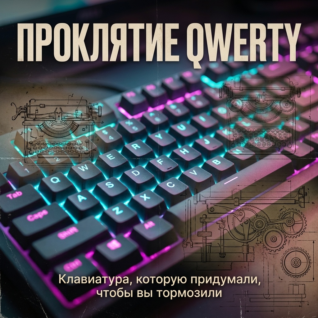 Что ж, у меня для вас плохие новости. QWERTY — это не вершина инженерной мысли. Это технический костыль 1873 года, который по случайности стал мировым стандартом. И да, он был спроектирован так, чтобы вы печатали медленнее. Давайте разбираться, как одна проблема с железками обрекла человечество на полтора века мучений с мизинцами