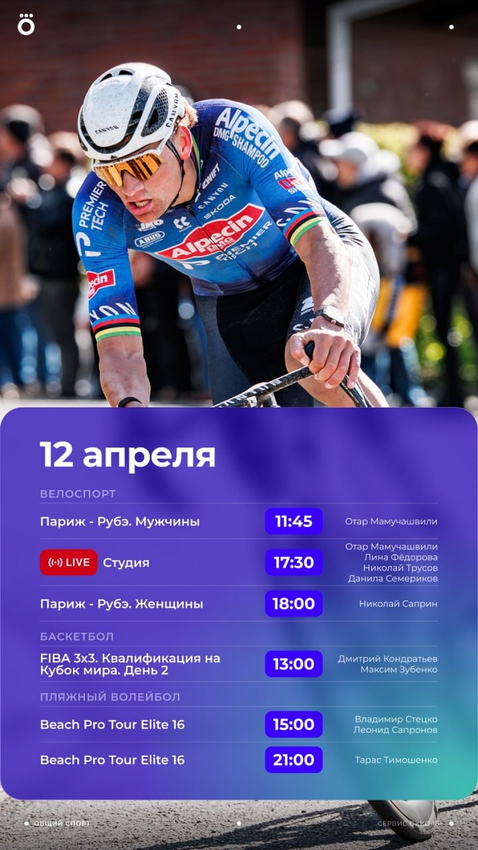Проводим День космонавтики вместе с Okko: сегодня смотрим велоспорт, баскет, пляжный волейбол и очень много футбола! 🎉