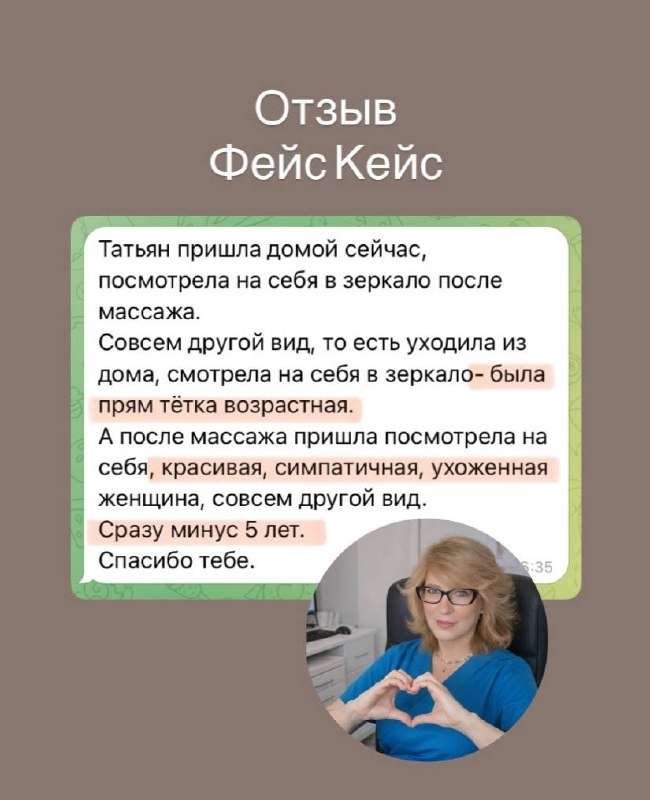 Это глубокая работа с архитектурой лица: ✨ С возрастом и под влиянием стресса мышцы спазмируются, а ткани «сползают» вниз. Моя методика позволяет мягко вернуть их в естественное, молодое положение. Лицо буквально «встаёт на место». ✨ Застой лимфы делает лицо тяжелым и прибавляет возраст. Мы запускаем лимфодренаж: уходят мешки под глазами, овал становится чётким, а скулы выразительными. ✨ Лицо не заканчивается на подбородке. Расслабляя шею и работая с плечевым поясом, мы убираем причину появления брылей и второго подбородка. Когда расправляются плечи - «раскрывается» и лицо. ✨ Мы снимаем мышечные зажимы, которые формируют хмурый взгляд и опущенные уголки губ. В итоге вы видите в зеркале не «уставшую тётку», а себя — настоящую, свежую и сияющую. Девочки мои! Я всегда с нетерпением жду ваши отзывы! Каждое ваше слово согревает и окрыляет 🧚♀️ Спасибо вам за тепло и доверие! Всегда ваша, Татьяна Пронина 💋