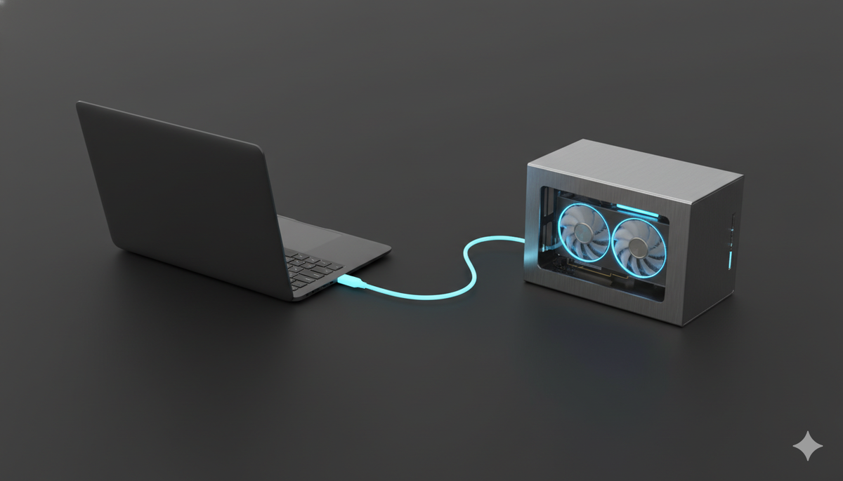 Купить мощный игровой ноутбук — решение понятное, но часто компромиссное. Он тяжелый, шумит как пылесос и перегревается. Другой путь — взять компактный ультрабук для работы, а дома превращать его в полноценную игровую станцию. Идея внешней видеокарты (eGPU) не нова, но за последние годы она прошла путь от «костылей» для энтузиастов до вполне рабочих решений.
