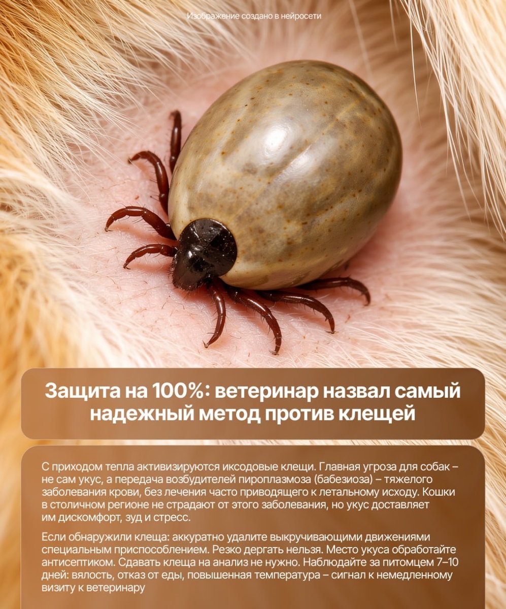 Как защитить питомца от кровососов — рассказал ветеринар Сезон клещей в ХМАО открыт. Кровососы опасны не только для людей , но и животных. Главная опасность для собак — не сам укус, а передача возбудителей пироплазмоза (бабезиоза) — тяжелого заболевания крови, которое без лечения часто приводит к гибели животного. Кошки в наших широтах от этого заболевания не страдают, но укусы доставляют им дискомфорт, зуд и стресс. Ветеринарный врач Михаил Шеляков назвал четыре способа защиты питомцев, расположив их по степени надежности. Подробнее — смотрите в карточках. Подписаться | Прислать новость | Дать «буст» | Мы в MAX