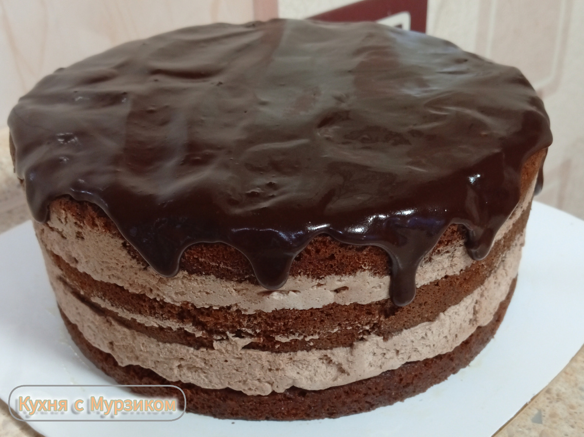 День рождения мужа — это всегда ответственно. Хочется удивить, порадовать и чтобы было вкусно. В этом году я решила испечь торт сама. Никаких покупных — только свой бисквит, свой крем и своё вдохновение. Так появился торт «Людвиг». Название придумал муж — сказал, что оно звучит солидно и надёжно. И правда: торт получился шоколадным, насыщенным, с нежным кремом и зеркальной глазурью. Он не крошится, хорошо режется и очень нравится мужчинам (сын тоже оценил). Мурзик, конечно, крутился рядом. Правда, шоколад ему нельзя, но понюхать воздух он приходил несколько раз. Сидел на кухонном уголке, смотрел важным взглядом — вроде одобрил. 😸 Выход: торт диаметром 20–22 см, вес около 1,5 кг. · Яйца — 5 шт. (комнатной температуры) · Сахар — 150 г · Мука — 120 г · Какао-порошок — 30 г · Разрыхлитель — ½ ч. ложки · Соль — щепотка Пропитка (по желанию): · Молоко — 100 мл · Сахар — 1 ст. ложка Крем сливочно-шоколадный (на какао): · Сливки для взбивания (33–35%) — 500 мл (холодные)