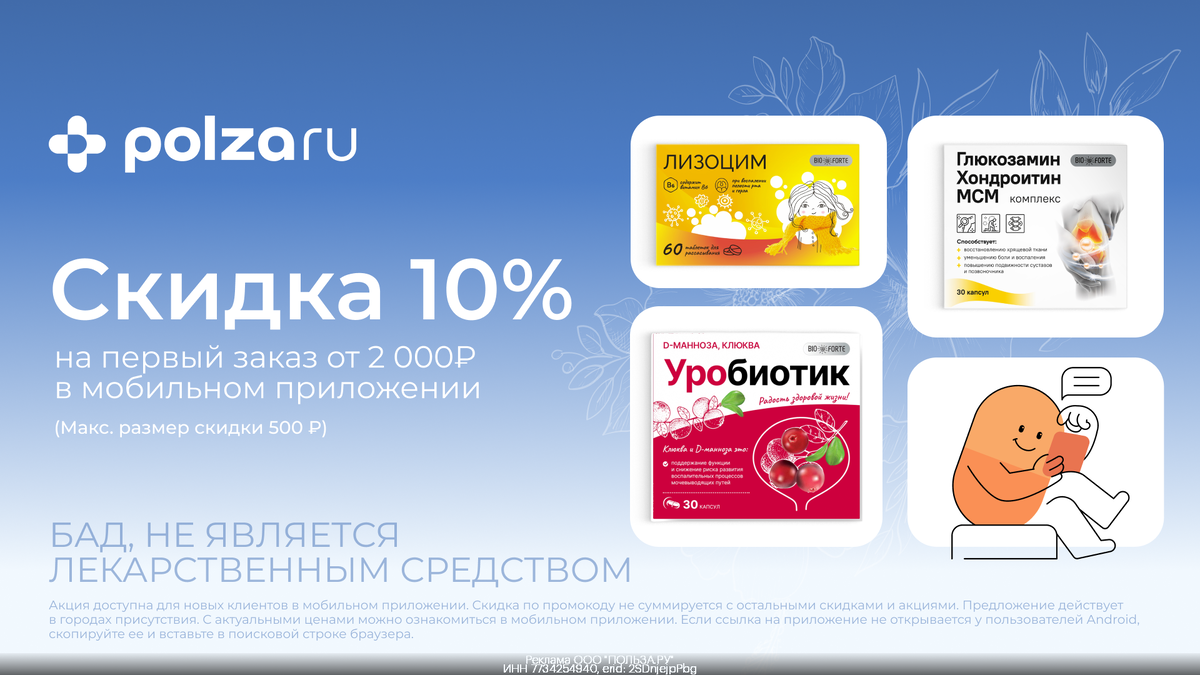 💊 Витамины и лекарства со скидкой 10% в приложении POLZAru