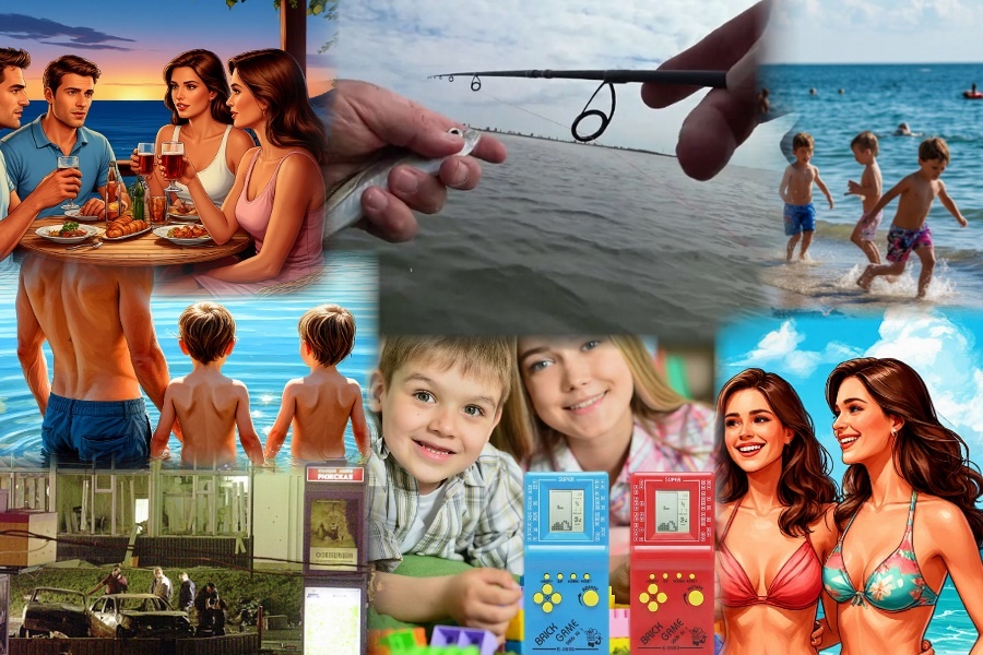 Мы с Андрюхой первыми в море нырнули, к берегу быстро вернулись, сыновей встретили у кромки прибоя. А тут и жёны со Светой не спеша подошли. С полчаса весело плескались рядом с берегом. Света мальчишек на берег вывела, а мы с жёнами небольшой и неторопливый заплыв метров на 50 совершили. Потом с сыновьями крепость на песке начали строить.