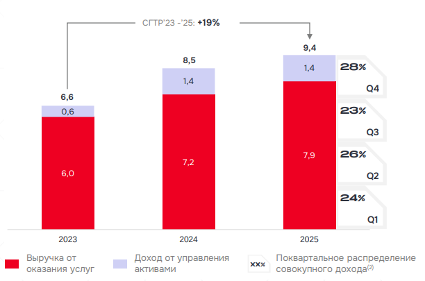 Деньги от IPO (2,3–2,4 млрд руб.) не идут в бизнес — это выход в кэш Совкомбанка и его друзей. Кстати, для Совкомбанка происходящее — позитив: Помните: вы финансируете выход инвесторов, а не рост компании. В 2025 году из 9,4 млрд выручки, 1,4 млрд (15%) — от управления активами (изменение стоимости облигаций, процентные доходы). ЦБ будет ставку снижать, доходы будут падать. Представьте, если доход от управления активами (1,4 млрд) сократится в 2 раза (до уровней 2023). Это — минус 0,7 млрд. Прирост выручки от оказания услуг за 2025 год — тоже 0,7 млрд руб. Короче, пока ставка ЦБ высокая, нужно фиксировать прибыль. Совкомбанк деньги считать умеет. Пришло время выходить. Регулируемые закупки — половина бизнеса B2B-РТС. Компания в проспекте ценных бумах [который никто не читает] всё честно пишет: Риск изменений в регулировании государственных закупок (правовой риск). Законодательство о государственных закупках в России регулярно корректируется, что может затрагивать тарифы, порядок провед