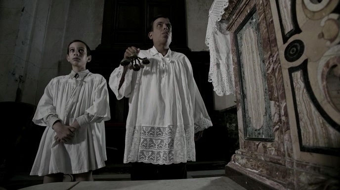 Италия, 50-е годы. Где-то в глухомани один мальчик вальнул другого из рогатки, заподозрив в нём самого Дьявола. Инцидент бросает тень на всю католическую церковь. Молодой сотрудник итальянского МВД едет разбираться. Выясняется, что покойный и впрямь вёл себя как одержимый, но его близкие всеми силами пытаются скрыть обстоятельства происшествия. Что-то тут нечисто... Доброкачественный католический хоррор, в котором главное - нагнетание жуткой атмосферы и хорошо переданный дух времени. Сбежавший из тюрьмы преступник отправляется под видом паломника в далёкую деревушку, где его подельник спрятал украденное добро. Местные жители, похожие на жутких мутантов, всячески выказывают гостю радушие, но явно для того, чтобы усыпить его бдительность... Да, это очередной фильм (кукольный мультфильм) про очередную деревню со страшной тайной. Но чем дальше развивается сюжет, тем больше тянет сочувствовать герою, тем интереснее, как он выпутается. Вдобавок по ходу дела крепко достаётся испанской католич