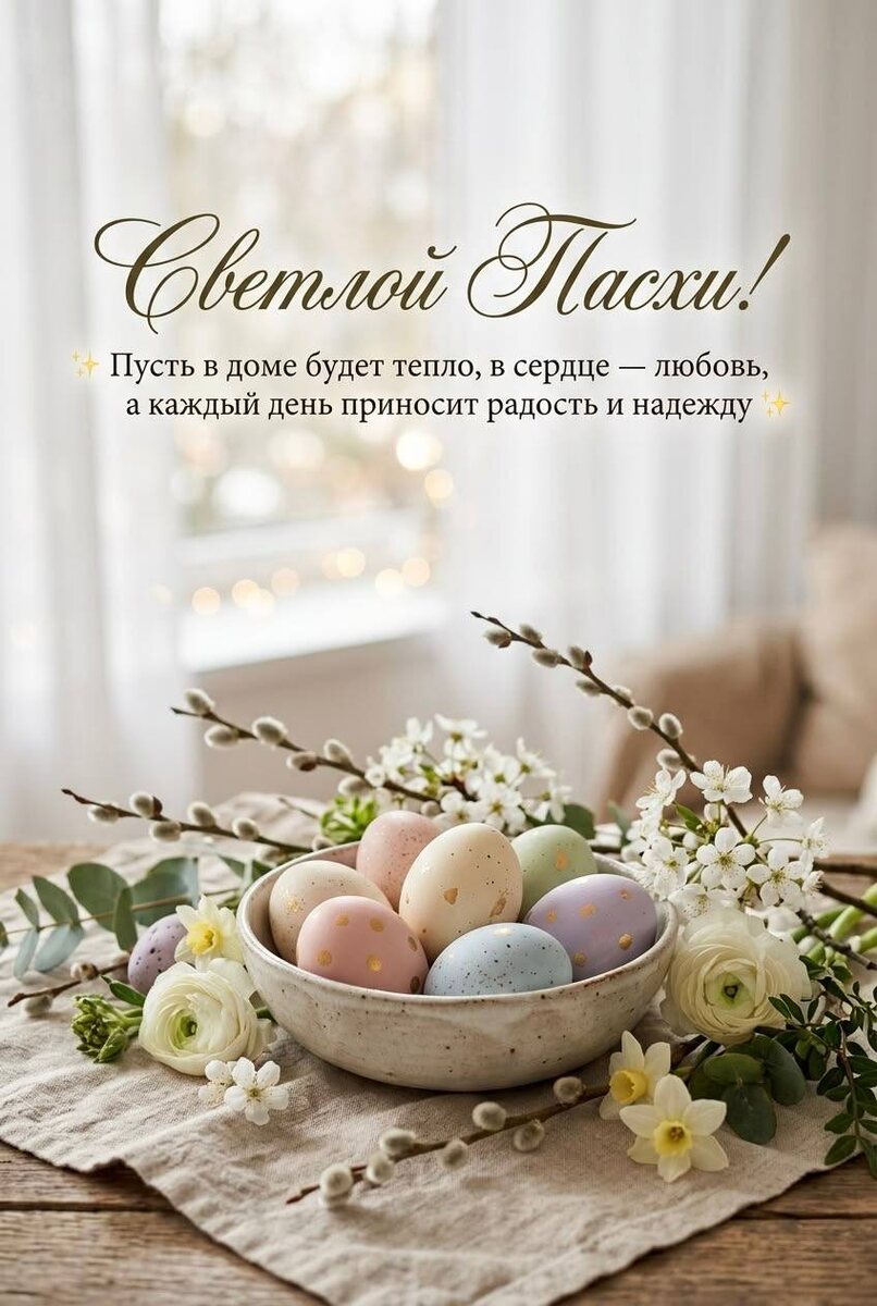 ! 🤩 Пусть этот день наполнит сердце теплом, надеждой и верой в лучшее🥚 Желаю мира, добра, уюта в доме и любви рядом с вами🥚 Пусть жизнь обновляется, как весна, принося счастье и благополучие🩶 🤩🤩🤩🤩🤩