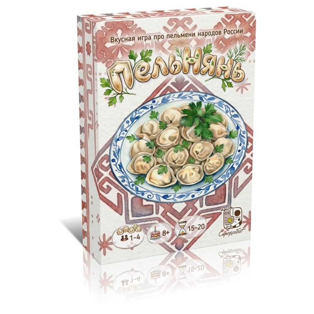 Он будет совмещенный сразу на две игры: они не очень большие и сложные по комплектации (но от этого не менее интересные), поэтому решили пустить их парой. И одна из игр — это игра про пельмешки народов России. Вы с компанией поваров из разных регионов решили устроить битву в придорожном кафе и определить, кто из вас лучший повар. Вам нужно обслуживать посетителей, собирая на подносах порции различных видов «пельменей», зарабатывать соусы, устраивать «подлянки» соперникам спецкартами и следить затем, чтобы у вас на руках и на раздаче к концу игры осталось максимальное количество нужных вам соусов. Вас ждут оригинальная акварельная графика, режимы как для одного, так и 2-4 игроков с 8 лет и головоломный выбор, что лучше сделать: не дать победить сопернику или набрать больше очков самому. Соусы на раздаче заканчиваются, порции пельменей вы собираете все вместе, а кафе работает в режиме завтраков, обедов и ужинов со своими правилами. Пельмени, вареники, буузы, ростеунчики с уксусом, с