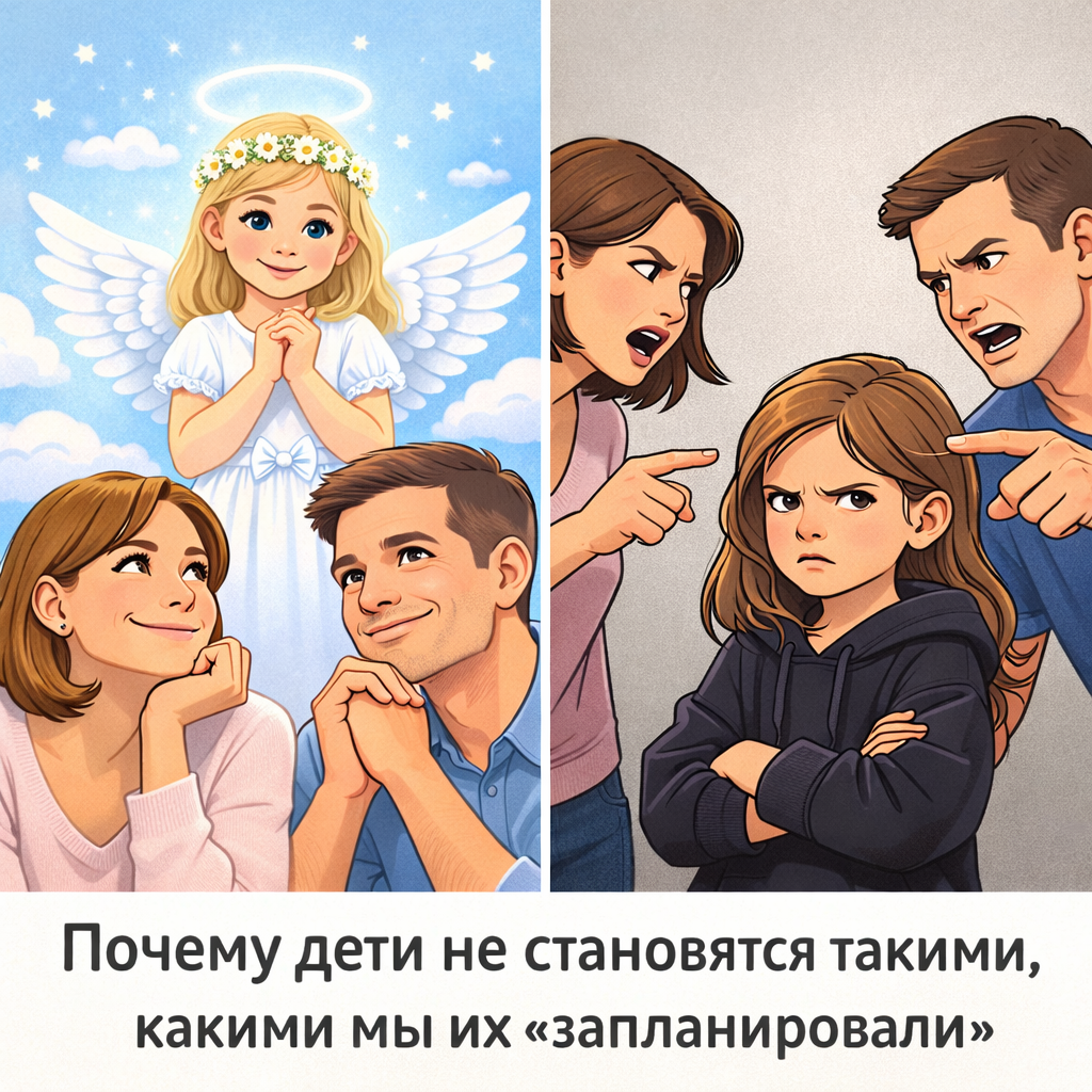 Есть одна тонкая психологическая ловушка, в которую попадает почти каждый родитель. Она возникает в тот момент, когда мы начинаем “слишком сильно представлять”, каким должен быть наш ребенок. Мы рисуем образ. Иногда очень красивый. Иногда очень правильный. Но почти всегда слишком идеальный. И именно здесь начинается самое интересное. В психологии есть понятие, чем сильнее мы убеждены, что что-то обязательно должно быть именно так, тем больше напряжения мы создаём вокруг ситуации. Родитель думает: — Мой ребёнок будет спокойным и послушным. — Моя дочь обязательно станет отличницей. — Мой сын будет целеустремлённым, как я в детстве. — Он никогда не будет таким ленивым, как другие дети. Звучит безобидно. Даже заботливо. Но внутри этих мыслей скрывается жёсткое ожидание! И оно гласит 24/7: “Ребёнок обязан соответствовать образу в нашей голове”. И чем сильнее этот образ, тем сильнее столкновение с реальностью. И реальность всегда разрушает идеал!