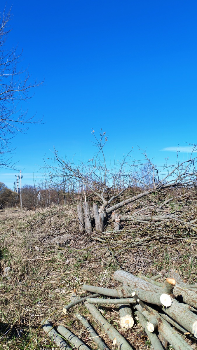 Вчера весь день занимались на участке, несмотря на штормовой ветер, и достаточно много сделали. Рассортировали мусор на органический и бытовой, спилили 2 дерева, осушили пруд почти полностью.