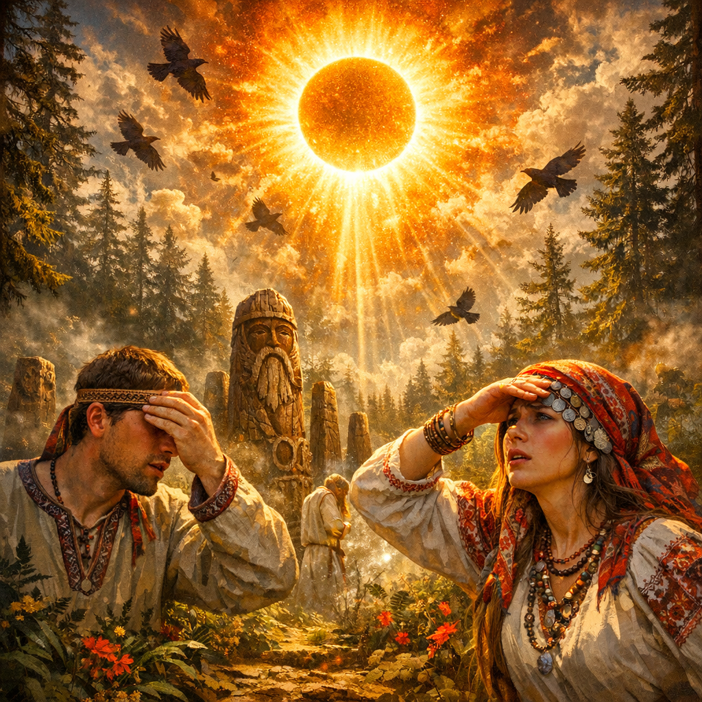 Славяне не были «поклонниками солнышка» в стиле открыток. Солнце уважали, но уважение это часто было жёстким: не «какое милое», а «не трогай, не зли». В дохристианских представлениях солнце — источник жизни и одновременно судья. Оно видит всё. Оно «выводит на свет» скрытое. Оно может благословить, а может высушить землю, спалить урожай, наказать болезнью.