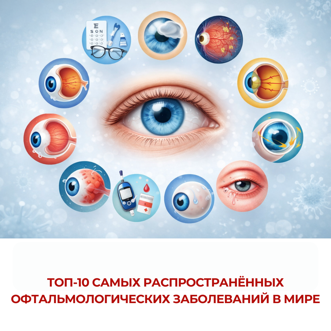 По данным World Health Organization, более 2,2 млрд человек в мире имеют нарушения зрения, и как минимум в половине случаев их можно было предотвратить или вылечить Вот 10 самых распространённых заболеваний глаз, о которых важно знать 👇 1️⃣ Нарушения рефракции (близорукость, дальнозоркость) Самая частая причина ухудшения зрения в мире 👓 2️⃣ Катаракта Главная причина слепоты — более 94 млн случаев 3️⃣ Возрастная макулярная дегенерация Одна из ведущих причин потери зрения у людей старше 50 лет 4️⃣ Глаукома Хроническое заболевание, которое может привести к необратимой слепоте 5️⃣ Диабетическая ретинопатия Осложнение сахарного диабета, поражающее сетчатку 6️⃣ Пресбиопия (возрастное снижение зрения) Затрагивает более 800 млн человек во всём мире 7️⃣ Синдром «сухого глаза» Одна из самых частых причин обращения к офтальмологу 8️⃣ Конъюнктивит Воспаление глаза, часто инфекционного или аллергического характера 9️⃣ Заболевания роговицы Могут возникать из-за инфекций, травм или дефицита витамин