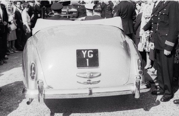 Юрий Гагарин едет по Лондону в "Роллс-Ройсе" с номером, составленном из его инициалов и единицы - дань уважения первому в истории космонавту