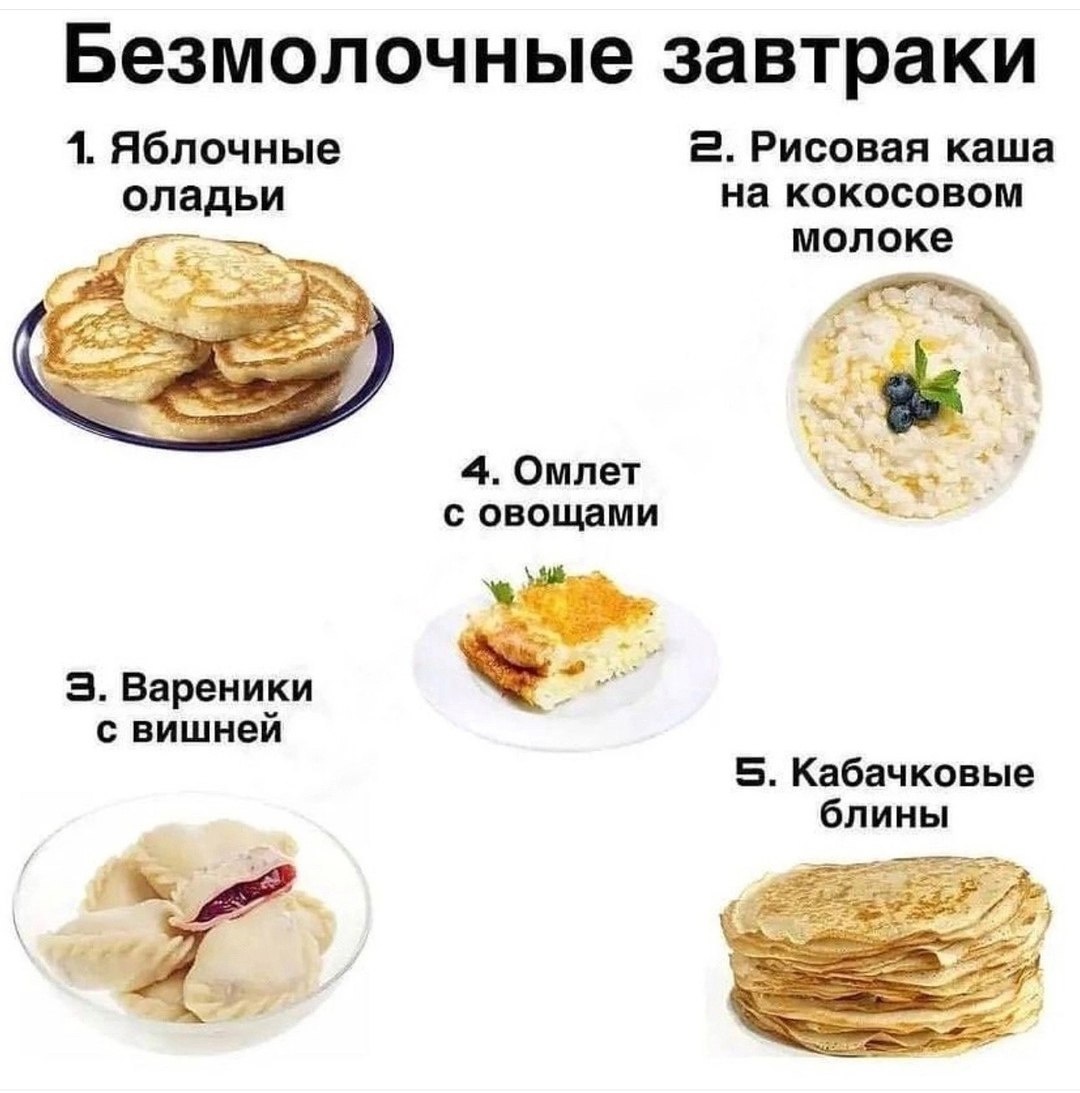 Добрый день, дорогие друзья 🌷 Сегодня делюсь с вами сразу несколькими простыми и удачными идеями для завтрака. Такие блюда выручают, когда хочется приготовить что-то сытное, домашнее и без лишних хлопот 💛 Получается очень вкусно, а продукты самые простые, а результат радует ✨ Можно выбрать вариант на любой вкус — и сладкий, и более сытный, и даже с овощами для всей семьи. Блюдо: безмолочные завтраки Ингредиенты: — яблоки — 2 шт. — рисовая мука — 5 ст. л. — яйцо — 1 шт. — сахар или сахарозаменитель — по вкусу — рис — 50 г — вода — 100 мл — кокосовое молоко — 200 мл — соль — по вкусу — вишня — 300 г — мука пшеничная и цельнозерновая — 350 г — вода — 200 мл — брокколи — 50 г — помидор — 1/2 шт. — кабачок — 1/2 шт. — яйца — 3 шт. — мука рисовая, овсяная или цельнозерновая — 200 г Пошаговый рецепт: Шаг 1: Для яблочных оладушков натрите яблоки на мелкой тёрке, добавьте яйцо, рисовую муку и сахар по вкусу. Всё хорошо перемешайте и жарьте небольшие оладьи на сковороде, смазанной каплей м