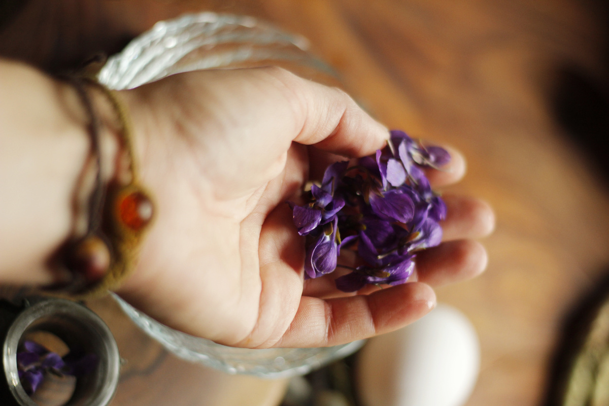 Но мы в этот раз фиалку использовали как краситель (ну и ели ее в свежем виде тоже). Ничего сложного в таком крашении нет совершенно: свежим цветком мы натирали горячие отварные яйца, предварительно вымытые с содой.