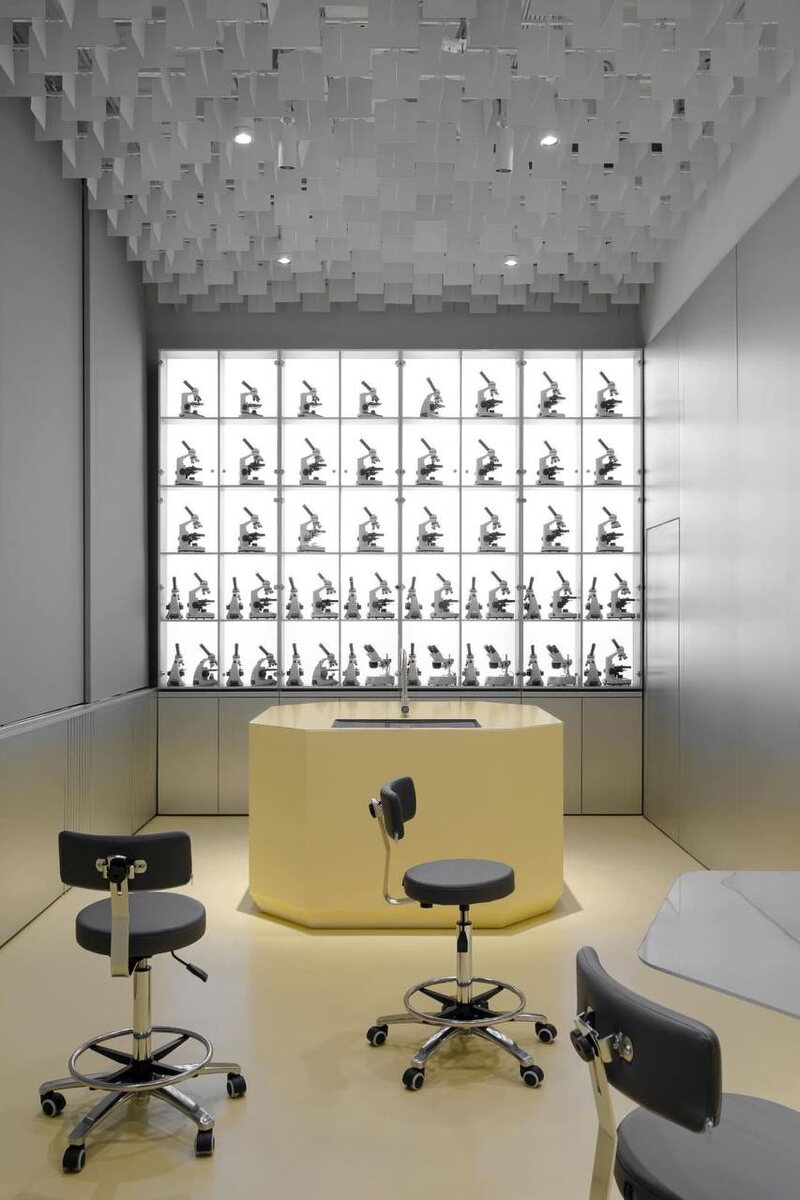» на ВДНХ. Экспозиция Государственного биологического музея имени К. А. Тимирязева рассказывает о мире насекомых, пчелах и культуре пчеловодства. Форма шестигранника — отсылка к пчелиным сотам — повторяется в медовом киоске, витринах и столах лаборатории, а скошенные края проходят лейтмотивом через все объекты. Кроме того, центральная изогнутая металлизированная стена напоминает спинку жука-скарабея. 🧭 пр-т Мира, 119, павильон № 28 «Пчеловодство».