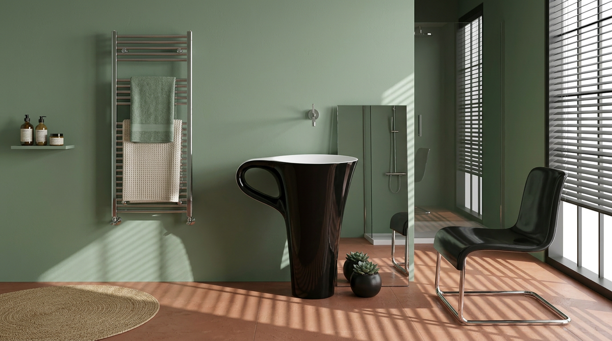 Когда интерьер ванной комнаты претендует на звание произведения искусства, выбор сантехники превращается в поиск не просто функционального элемента, а смыслового центра композиции. Итальянский бренд ArtCeram создал модель Cup OSL004 01 50 именно для таких пространств. Перед вами не просто раковина, а напольная композиция-моноблок. В отличие от классических навесных или встраиваемых моделей, ArtCeram Cup представляет собой самостоятельную скульптуру. Массивное основание выполняет роль благородного пьедестала, полностью скрывая от посторонних глаз все технические узлы: подключение к канализации и коммуникации. Это решение дарит ощущение абсолютной целостности и визуальной чистоты. Вода и камень встречаются в едином, неделимом объёме. Габариты изделия — 70x50x85 см. Это вертикально выверенный силуэт, который задаёт ритм всему помещению. Материал изготовления — искусственный камень премиального сегмента. Это поверхность с шелковистой матовой текстурой. Такой камень сохраняет первозданный в