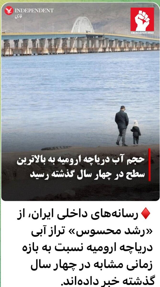 Иранские СМИ пишут, что уровень воды в Урмии заметно поднялся и сейчас, по данным Nournews, достиг лучших для этого сезона показателей за последние четыре года. Министерство энергетики связывает это с осадками и восстановлением притока рек — с начала водного года прибавка составила около метра. Подпишитесь на канал