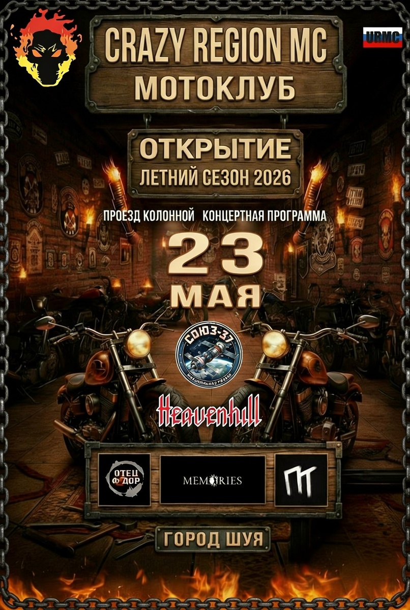 ! 🔥🏍️ Дорогие байкеры и любители двухколесной свободы! Мы рады пригласить вас на долгожданное открытие мотосезона 2026 в Шуе, на Ивановской земле! 🚀 Это событие станет отличным стартом для всех, кто жаждет приключений и ярких моментов на дорогах. 📅 Дата: [23.05.2026] 📍 Место: [будет дополнительная информация] Приглашаем всех, независимо от стажа и марки мотоцикла, присоединиться к нам для незабываемого праздника! Мы подготовили для вас: ✅ Зажигательную программу с конкурсами и призами ✅ Общение с единомышленниками и атмосферу настоящего братства Не забудьте взять с собой хорошее настроение и будьте готовы к встрече с солнечными днями и новыми друзьями! Следите за обновлениями.