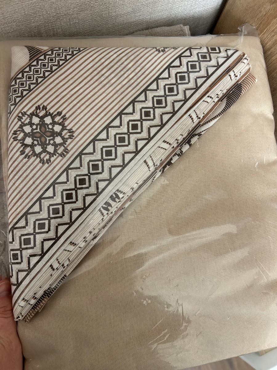 Два одинаковых комплекта на 3000 р. Брала подходящие по цветовой гамме к комнате. Также решила заказать новые полотенца, прошлогодние уже поизносились и стали жесткими. Заказала из Китая 2 комплекта по 3 штуки.