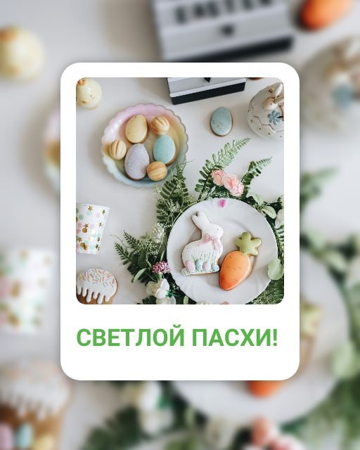 Христос Воскресе! Желаем вам душевного тепла, мира и благополучия. 💚 🐣 Наш блог 💚 RuTube 💙 ВК 📱 Дзен 📱 Max 📲 Каталог | На складе | Наш сайт | Поддержка ⚡️Голосуй за канал #бегарат