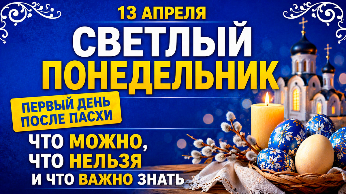 13 апреля 2026 года — Светлый понедельник. Это первый день после Пасхи, и в православном календаре он прямо так и обозначен: Понедельник Светлой седмицы. Самое важное здесь понять одну вещь: Пасха в церковной жизни — это не только одно воскресное утро и не только один праздничный стол. После самой Пасхи начинается целая неделя особой радости, которая называется Светлой седмицей.