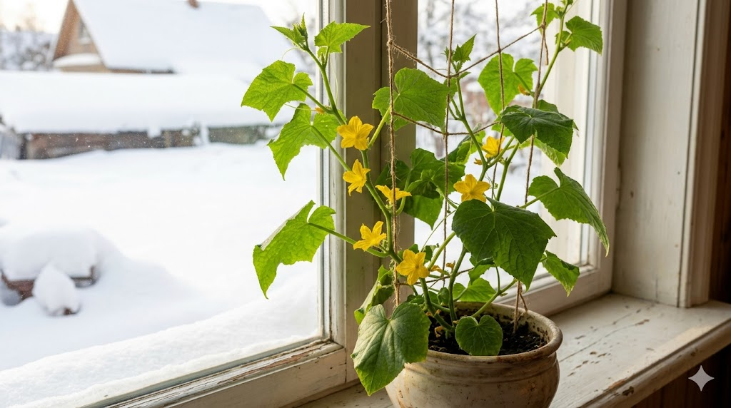 огурчики даже в январе. Для подоконника выбирают партенокарпические гибриды. Они не требуют опыления вообще. Завязи образуются сами. Но