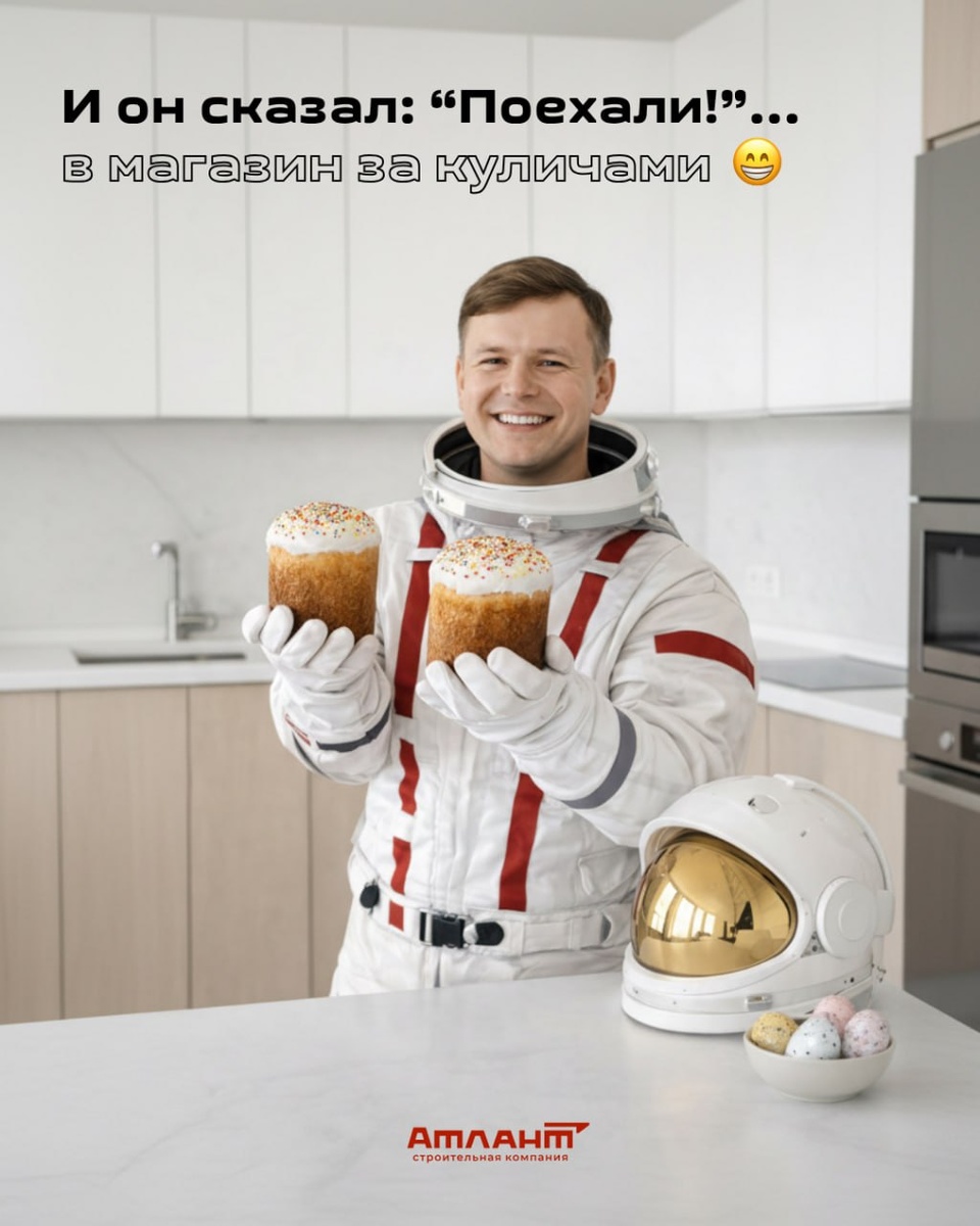 🪐 Сегодня лента соцсетей разделилась на два мира: одни поздравляют с Днём космонавтики, другие — выкладывают пышные, нарядные куличи. Мы решили не выбирать и объединили эти два настроения. Ведь праздники хоть и разные, но есть в них и что-то общее. Обе истории про новый этап жизни. Про стремление к свету. Про веру в то, что за горизонтом всегда есть нечто большее. Желаем всем нам мечтать по-крупному и не бояться открывать новые горизонты своей жизни. Кстати, лучше всего их видно с 15 этажа новых домов комфорт-класса от «Атланта» в центре Кургана😁 Поздравляем с днем, который символично объединил покорение космоса и святую Пасху!🪐