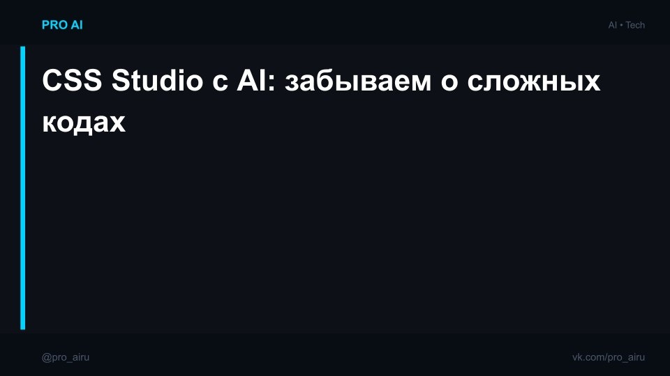 ? Css Studio с AI-агентом упрощает правку стилей для разработчиков. → Вот как начать: 1. Откройте Css Studio и загрузите ваш проект. 2. Измените стиль с помощью визуального редактора. 3. Отправьте изменения через AI-агента, чтобы видеть мгновенные результаты. Попробовали уже что-то подобное? Делитесь впечатлениями 👇 #CSSStudio #AIиКод #УпрощаемРазработку ━━━━━━━━━━━━━━━ 🔥 Подписывайся: 📘 ВК: https://vk.com/pro_airu ✈️ TG: https://dzen.ru/id/69933ce1cec3715def4523c4