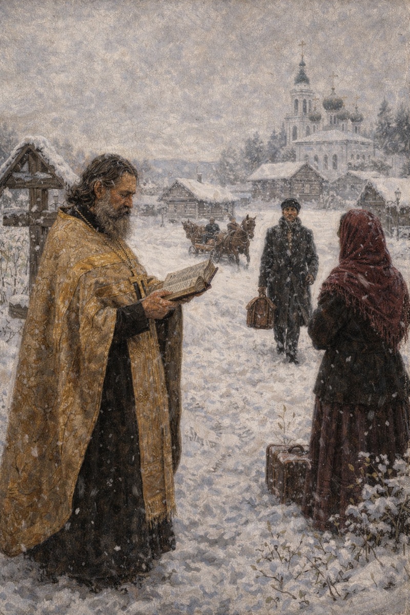 В октябре, когда дожди наконец прекратились и установилась сухая, холодная погода, в селе случилось два события. Первое — умер старый отец Досифей. Сердце не выдержало. Служил утром, а вечером слёг, и через два дня его не стало. Хоронили всем миром. Анисим читал над ним — не Псалтырь, а заупокойные молитвы, которые знал наизусть. Стоял у гроба, и голос его не дрожал, хотя в душе было пусто и больно.