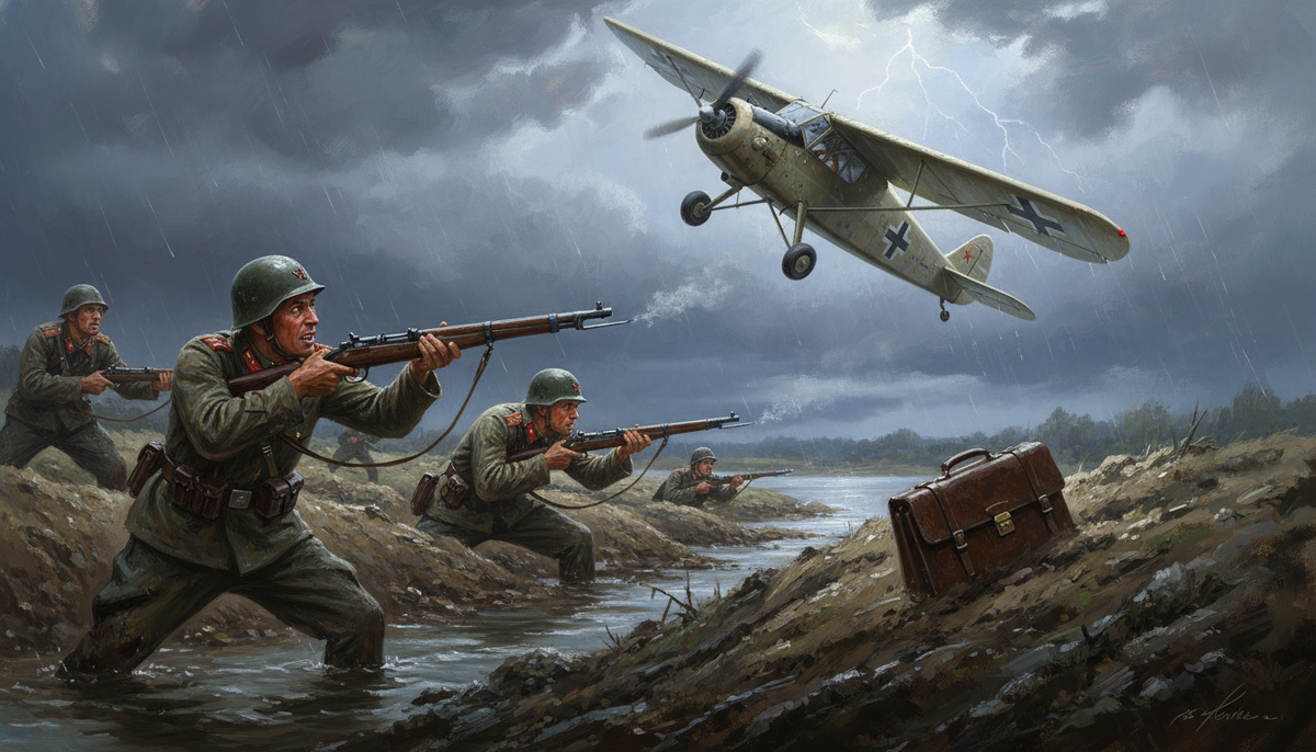 Генералу Паулюсу — тому самому, чья судьба решится под Сталинградом полгода спустя — приказали найти самолёт и убедиться, что документы не попали к русским. Немецкая разведка прослушивала советские передатчики круглосуточно. Установили вероятный квадрат падения. Направили лучшую поисковую группу.