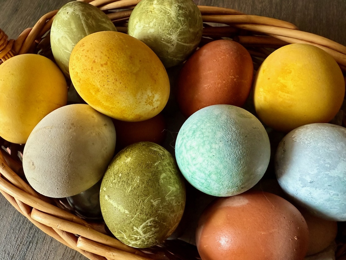 Какое урожайное на праздники нынче получилось 12 апреля! Но если с космонавтикой можно только повспоминать былое, а воспоминания, знаете ли, могут натолкнуть на думы, а это нам ни к чему, то с Пасхой, к счастью, все проще. Расскажу вам про кулинарный эксперимент, который вчера проводила моя супруга, пользуясь тем, что на улице погода такая, что выходить из дома не хотелось. В общем, решила она попробовать разные популярные рецепты, как красить яйца натуральными красителями. Первое и самое простое, что пошло в дело - это куркума. Она оказалась и самой действенной - яйца получаются желтые, можно поработать над разными оттенками, если заморачиваться со временем нахождения яиц в отваре. Понятно и эффективно. Дальше каркаде. Сделала она отдельно отвар из каркаде, плюс бросила каркаде в имеющуюся жидкость с куркумой - для получения яиц оливкового оттенка. Оливковый оттенок действительно получается - но тут чтобы цвет лег ровно, надо брать каркаде в чайных пакетиках, а не россыпью. Это урок н
