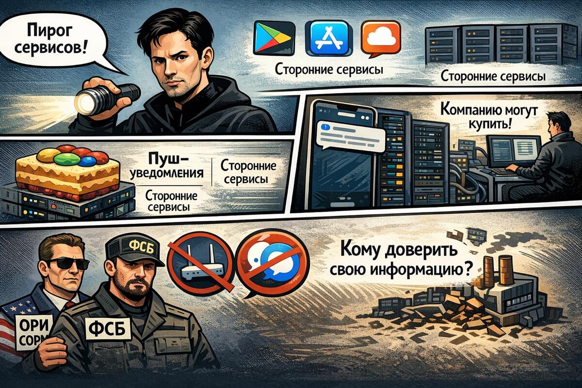 Сейчас любое приложение это наслоение пирога, есть дополнительные сервисы, которые участвуют в его работе. Если это мессенджер, то будут пуш уведомления, а кто их обрабатывает в первую очередь? Это сторы, Play Market и App Store, остальные маркеты в меньшенстве и другие сервисы пуш уведомлений. Нет никакого смысла в шифровании если в пуш уведомлении приходит весь текст и сохраняются копии. И это не единственная утечка, если вы арендуете сервера, к ним так или иначе имеет доступ хостинговая компания. Если вы используете сервисами, которые облегчают разработку n8n, Supabase, Firebase и другие, то вы доверяете всю информацию им. Не нужно обязывать мессенджер раскрывать всю информацию, чтобы получить доступ к этой информации, достаточно получить доступ в цепочке к кому угодно. Да самый простой путь в лоб, чтобы нужная компания предоставила информацию. У нас это закон ОРИ и по сути СОРМ для популярных сайтов (в других странах другие структуры, но суть одна). Здесь просто вопрос какой