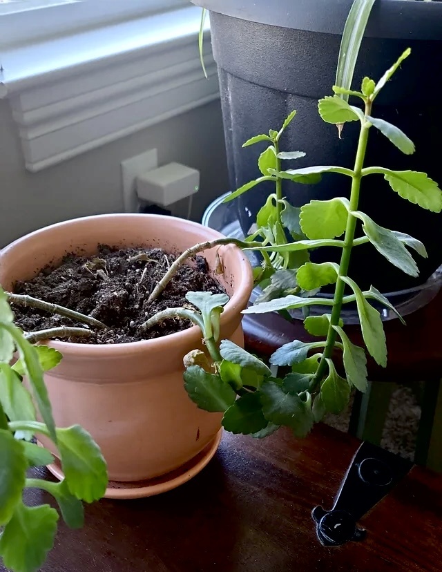 Если каланхоэ сильно вытянулось и потеряло декоративность, рассмотрите вариант омоложения. Срежьте верхушечные черенки с наиболее здоровых побегов и укорените их. Старый куст можно либо оставить для дальнейшего формирования (если он ещё не слишком ослаблен), либо заменить молодыми экземплярами — так вы гарантированно получите аккуратное и пышное растение.