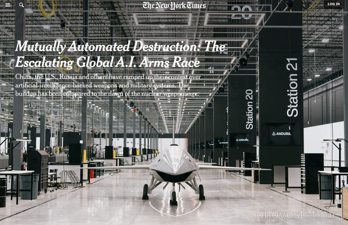 ⚡️ NYT: мир вошёл в гонку вооружений на базе ИИ — масштаб сравнивают с ядерной